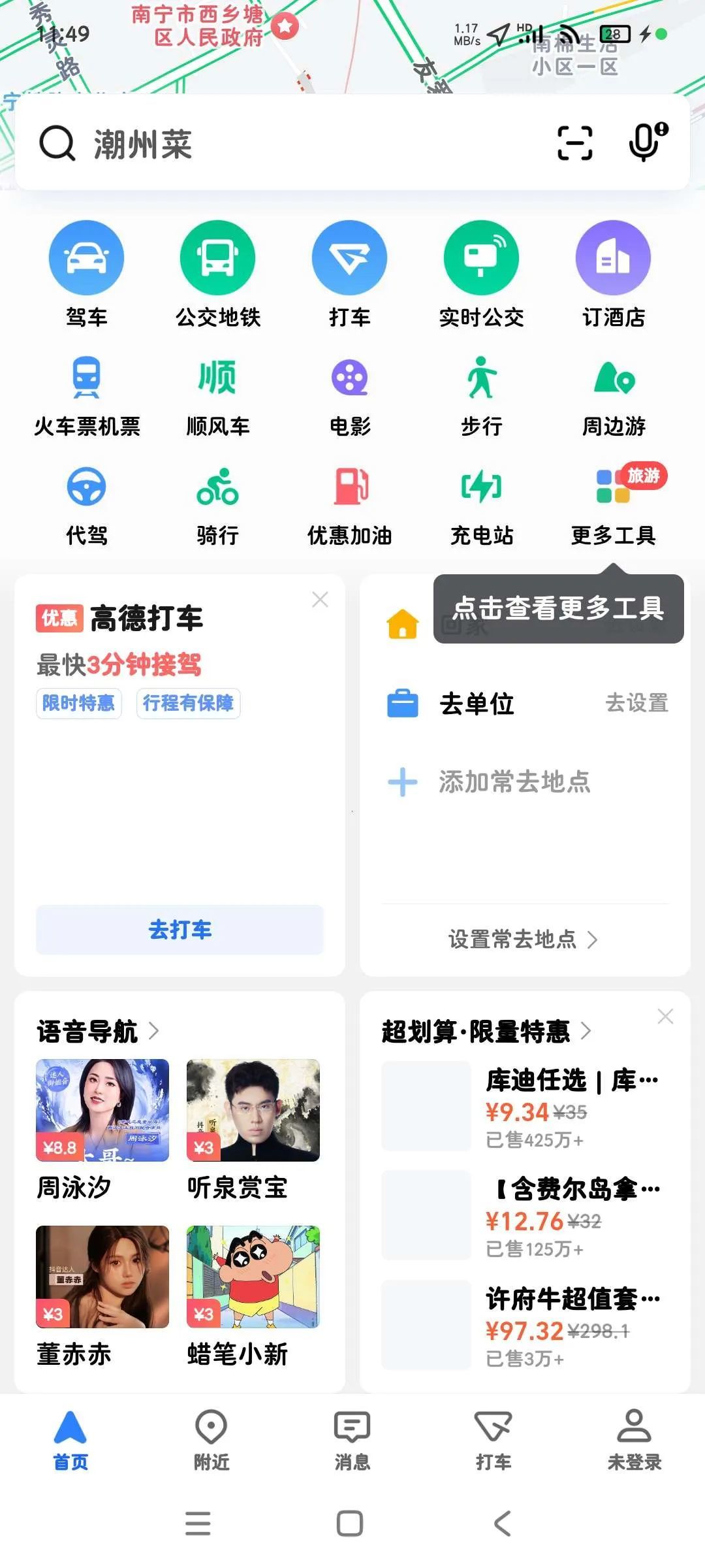🔍 地点搜索:快速查找周边餐饮、加油站、景点等POI信息。